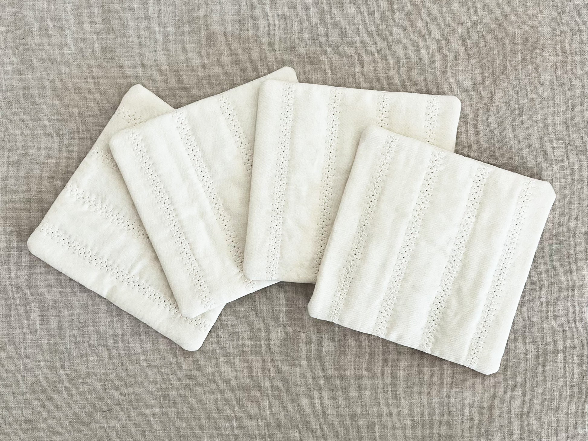 These handmade quilted coasters make a great gift! They are quilted using decorative stitches on my domestic machine.